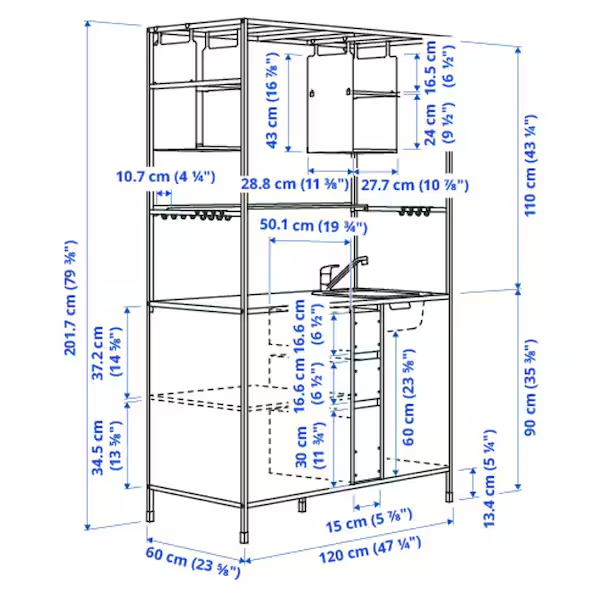 ÄSPINGE kitchenette offers many clever storage options in blended materials to create a small-sized solution with lots of character. Just add your choice of TILLREDA appliances and get cooking!